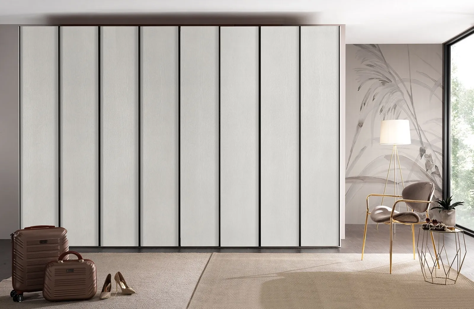 Gli Armadi e le cabine armadio con ante battenti devono arredare la zona notte assicurandoti una perfetta ottimizzazione degli spazi e un'esclusiva ricerca stilistica. La zona notte è dedicata al riposo, deve quindi risultare ben arredata e completa di mobili ed elementi accessori in grado di creare un'atmosfera sempre distensiva. Contattaci per info e preventivi e potrai ultimare la zona notte che hai sempre voluto grazie ad una ampia offerta di contenitori moderni come questo armadio in melaminico nella fotografia. Per ultimare ottimamente il progetto d'arredo, opta per le nostre proposte di Arredamento Casa dei migliori brand, letti, armadi e comodini differenti per buon gusto, dimensione e materiale.