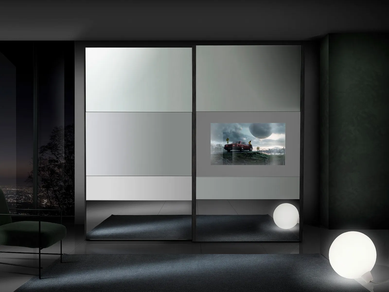 Armadi a muro design: scopri questo modello di Armadio Fantasy 2 Ante Scorrevoli con Specchi Incisi di Mobil Piu e completa la zona notte