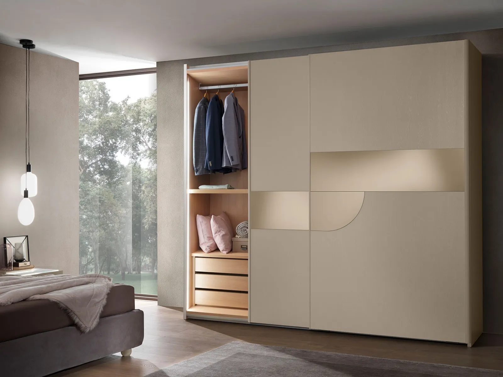 Una diversificata gamma di arredi in melaminico come questo armadio con ante scorrevoli nella fotografia. Venire in negozio vuol dire visionare in prima persona molti mobili del rinomato marchio, sempre di grande design. Armadio ad ante scorrevoli Gaia Cachemire di Mobil Più: se vuoi arredatori professionisti per preventivi e progetti, realizza con noi la casa che hai sempre voluto. Durata e comfort sono gli aspetti che, insieme a un elevato contenuto estetico, connotano tutti gli Armadi a muro moderni del marchio Mobil Piu. Armadio ad ante scorrevoli Gaia Cachemire di Mobil Più in melaminico: in una ricca gamma di mobili e oggetti accessori, questo modello ti farà ultimare la tua zona notte come l'hai sempre immaginata.