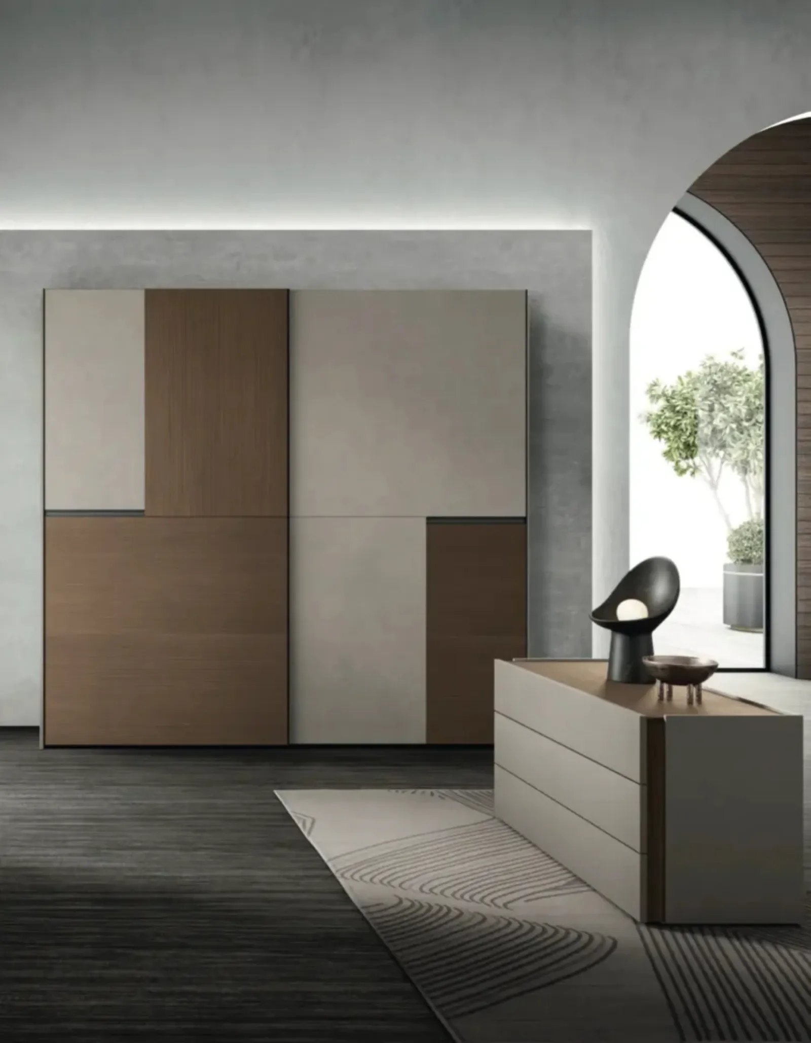 Armadio con anta scorrevole Lego di Artigianmobili in melaminico: in una ricca gamma di mobili ed elementi accessori, questo modello ti permetterà di completare la tua zona del riposo come l'avevi sognata. Armadio con anta scorrevole Lego di Artigianmobili: se vuoi arredatori professionisti per preventivi e progetti, realizza con noi la casa che hai sempre voluto. Durevolezza e comfort sono gli ingredienti che, unitamente a una buona resa estetica, distinguono tutti gli Armadi a muro moderni del marchio Artigianmobili. Se vuoi creare una stanza bella e funzionale, compila il form o visitaci per ottenere infromazioni, tante idee per la casa nell'ambito dell'Arredamento Casa. Una ricca offerta di arredi in melaminico come questo armadio con ante scorrevoli nella fotografia.