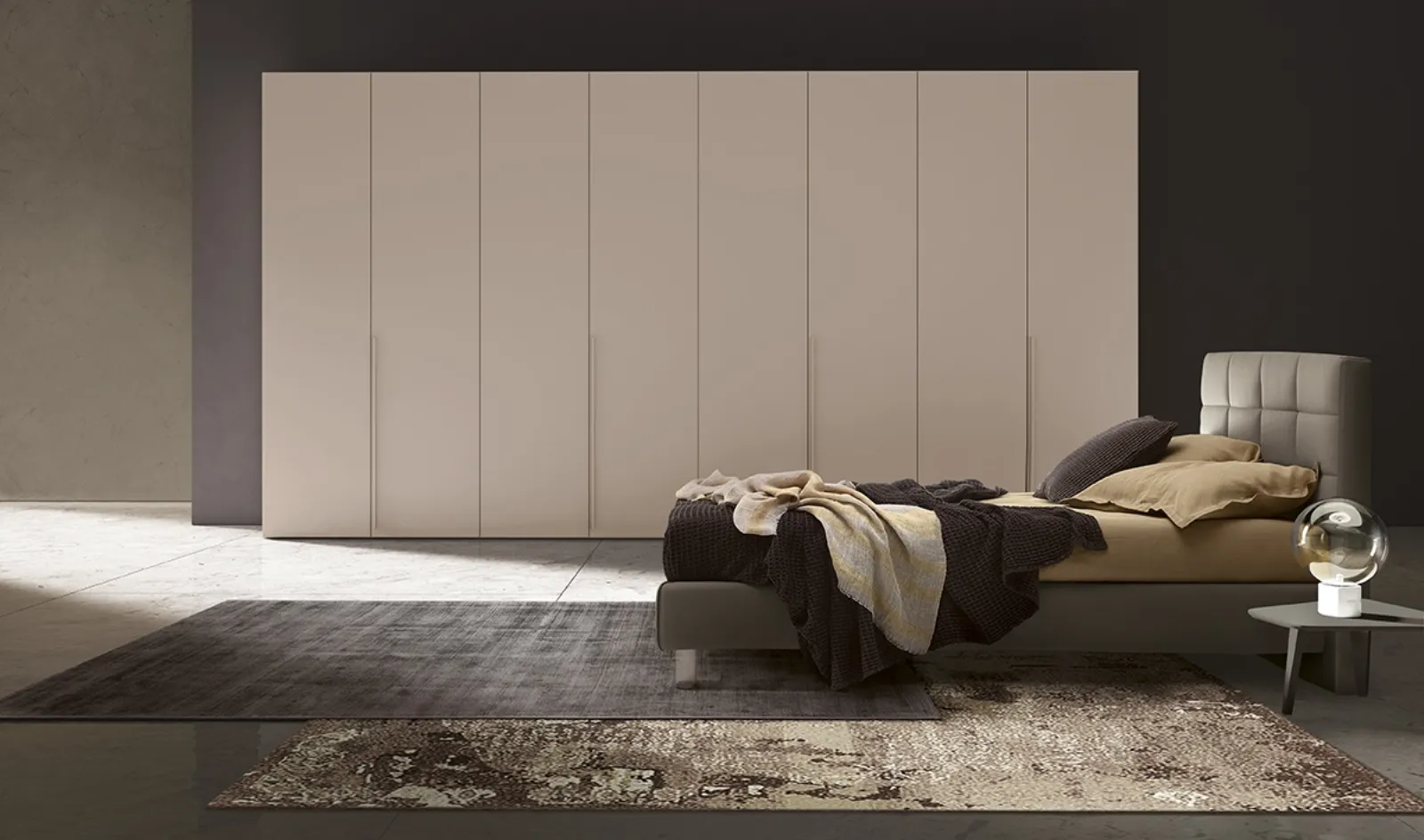 Gli Armadi a muro con ante battenti sono elementi essenziali in camera, per renderla arredata con gusto, funzionale e completa di tutto. Per ammobiliare ottimamente una stanza bella e funzionale, opta per le più originali soluzioni delle migliori marche, letti, armadi e comò di elevata qualità. Contattaci e ottieni informazioni sulla nostra linea di Arredamento Casa: potrai completare la zona notte usufruendo di una ricca disponibilità di contenitori moderni, come l'armadio in melaminico nella fotografia.