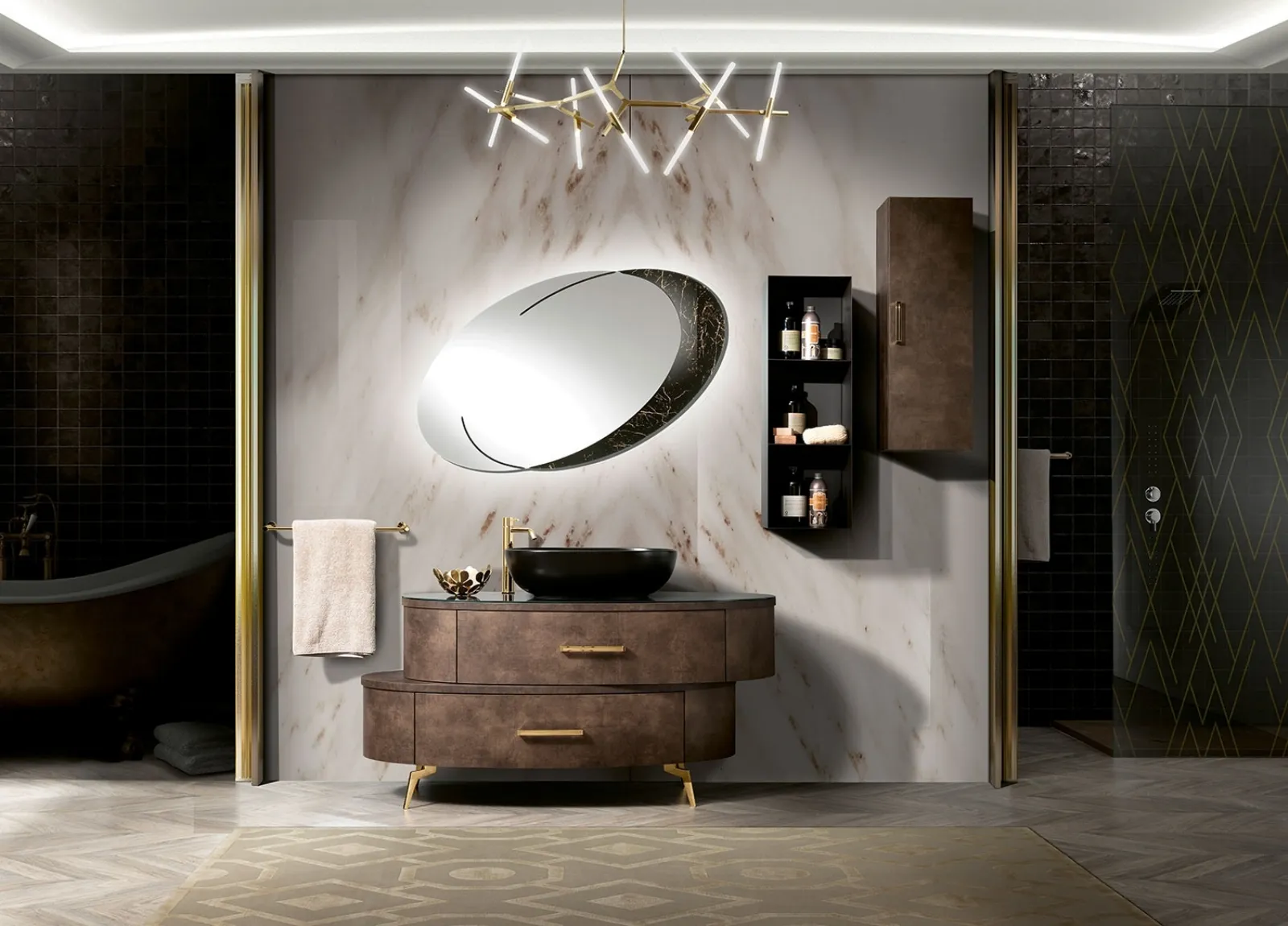 Il modello Mobile da Bagno a terra Incanto di Mobil Più in melaminico qui presentato arreda il locale mixando creatività e design, con grande classe. Oggigiorno il bagno non è più solo una stanza di servizio, al contrario al suo arredo viene riservata la medesima cura dei restanti locali di casa. Vieni da noi per conoscere questo e i restanti modelli di grande valore del brand che presentiamo, ti assicuriamo la totale soddisfazione a progetto terminato. Il noto e conosciuto brand presenta arredi per il bagno di ogni genere, così da rendere l’arredo dell'ambiente veramente personalizzabile, agibile e versatile. Ampia gamma di linee e cromie per le proposte di Arredo Bagno design con mobili bagno a terra di Mobil Piu, soluzioni sempre destinate alla massima personalizzazione.