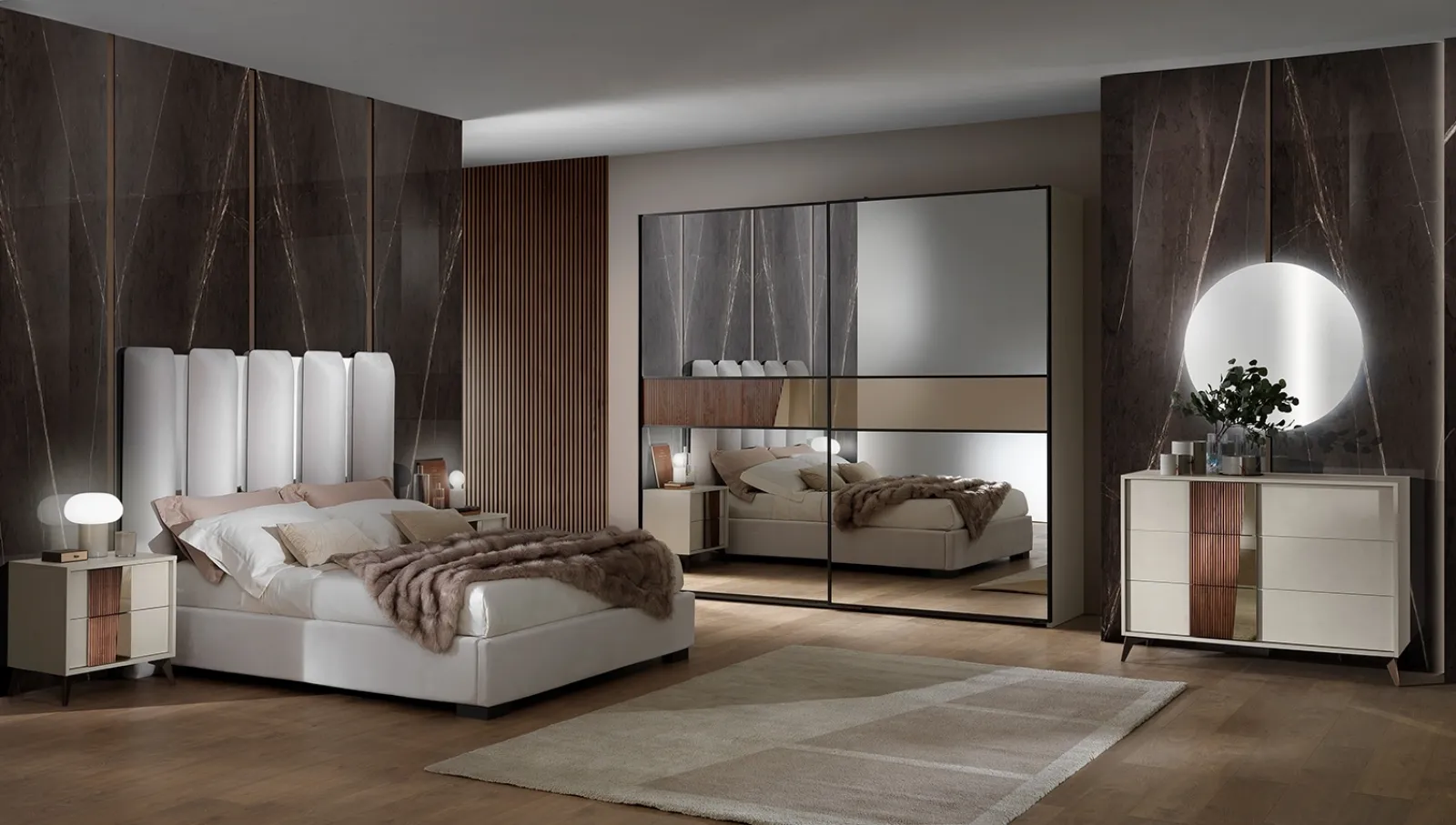 Con i nostri gruppi notte moderni della marca Mobil Piu, leader dell’Arredamento Casa per la camera da letto, potrai creare la zona notte che hai sempre voluto. La camera da letto contiene anche i Comodini: arredi contenitivi d'uso quotidiano che lasciano la possibilità di sistemare oggetti e contare su piani per appoggiare per diversi usi. Ottimizza i tuoi locali scegliendo composizioni di arredi abbinati o ricrea esteticamente gradevoli accostamenti di stile e cromie contando sul catalogo di mobili e oggetti accessori per la camera da letto che proponiamo, come il modello in melaminico presente in foto, anche realizzabili su misura.
