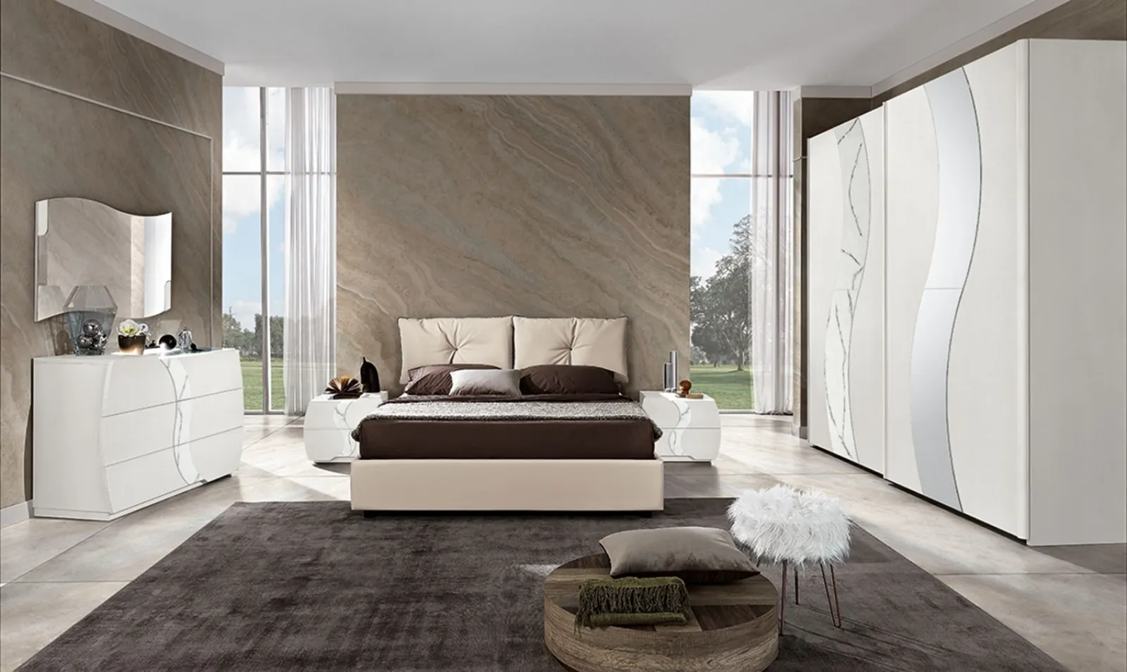 Con i nostri gruppi notte moderni dell'azienda Mobil Piu, specialista dell’Arredamento Casa per la camera da letto, potrai ricreare la zona notte che hai sempre voluto. Ottimizza i tuoi spazi scegliendo composizioni di mobili abbinati oppure ricrea voluti accostamenti di stile e tonalità contando sul catalogo di mobili e oggetti accessori per la camera da letto che proponiamo, come il modello in melaminico presente in foto, anche realizzabili su misura per te. Gruppo Notte Martina Bianco Frassino di Mobil Più: contattaci e ottieni informazioni sulle nostre composizioni e arreda la camera come l'hai sempre sognata.
