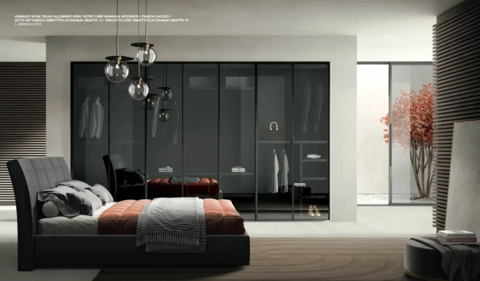 Il Letto con testiera Rettangoli di Artigianmobili ottimizza la camera assicurandoti il sonno più profondo e un'accurata ricerca stilistica