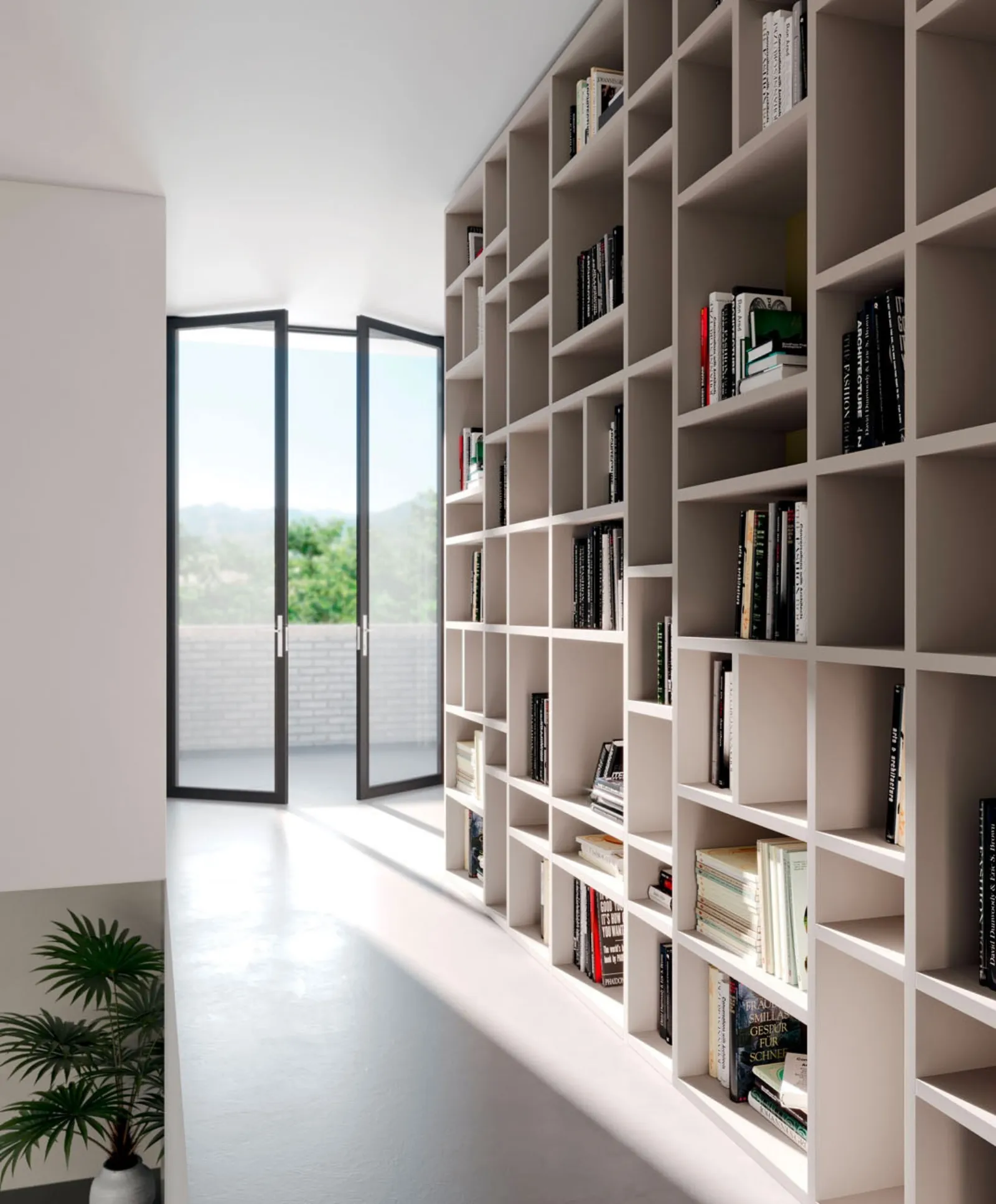 Il modello mostrato in foto fa parte della collezione di Librerie moderne a muro della marca Orme