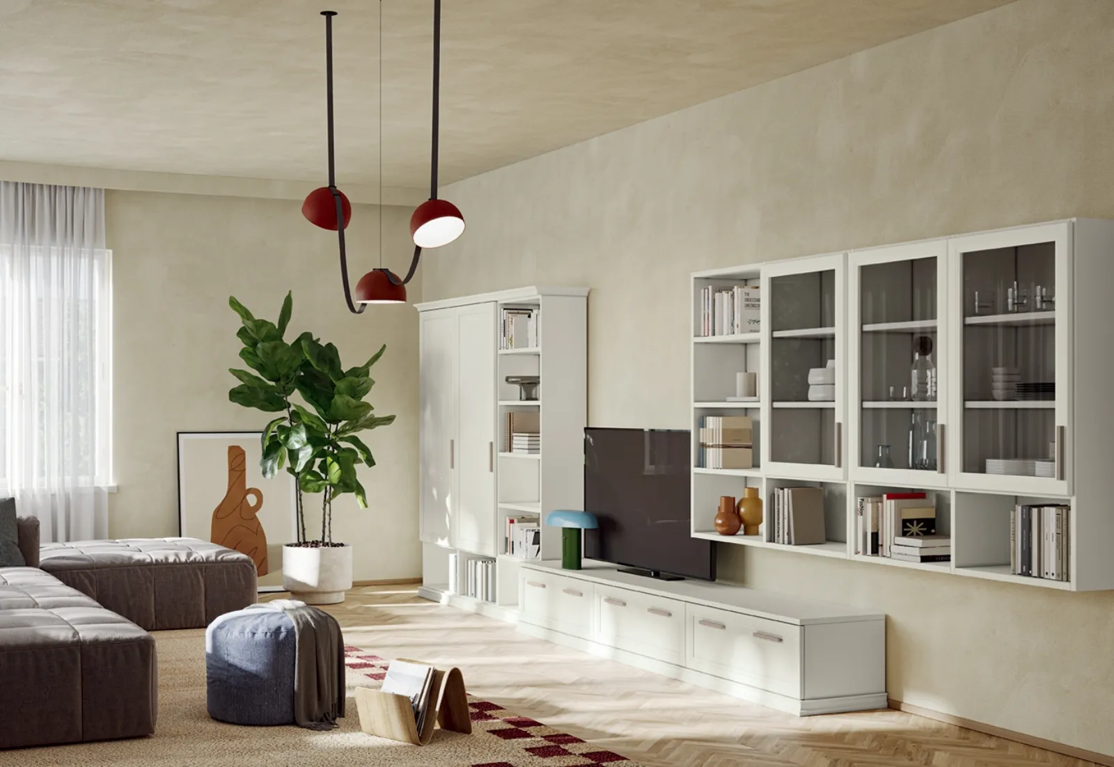 Un po’ librerie, un po’ contenitori ed espositori: le Pareti Attrezzate sono ideali per arredare uno spazio pratico e dinamico. Questa soluzione costituisce tutta la qualità che il marchio assicura grazie a pluriennale competenza e grande passione nel campo dell'arredo e del design. Se cerchi mobili salvaspazio e realizzabili su misura, contattaci e ottieni informazioni sull'Arredamento Casa dei migliori produttori. La Parete Attrezzata Arcadia AS003 di Colombini Casa in foto, con finitura in melaminico, risolve le più particolari esigenze abitative di stile e spazio senza rinunciare alla ricerca estetica.