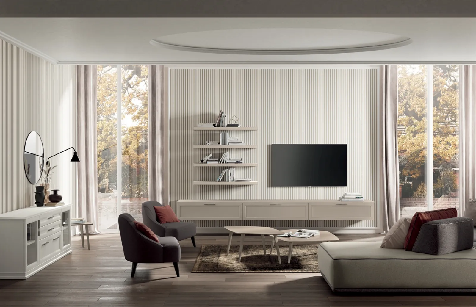 Attraverso un gioco dinamico di accostamenti fra elementi a giorno o vani chiusi, le Pareti Attrezzate classiche arredano il soggiorno sfruttando bene ogni spazio. Le Pareti Attrezzate hanno conquistato un posto di primo piano nella zona giorno delle nostre case: sono arredi plurifunzionali e salvaspazio sempre realizzabili su misura per te. Per informazioni e preventivi sulla Parete Attrezzata Arcadia AS009 di Colombini Casa in foto contattaci! Il modello proposto è realizzato in melaminico, ma grazie ad una vasta scelta di finiture, tonalità e conformazioni, potrà adattarsi a stili di ogni tipo.