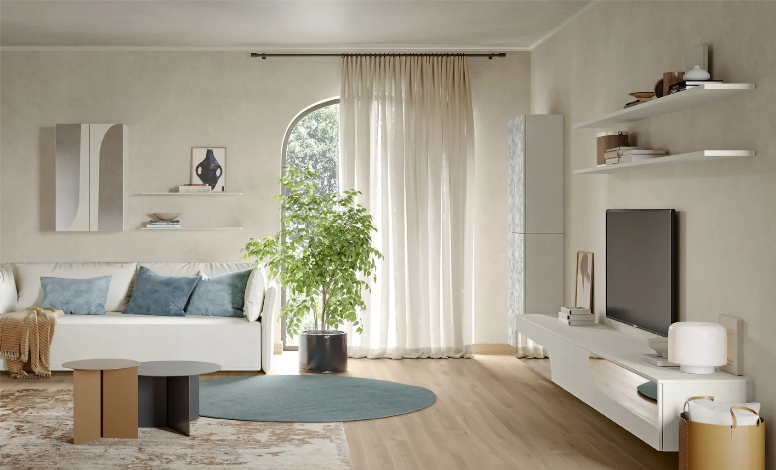 Le Pareti Attrezzate hanno assunto un posto di primo piano nella zona giorno delle nostre case: sono arredi plurifunzionali e salvaspazio sempre realizzabili su misura. Attraverso un gioco dinamico di accostamenti fra accessori a giorno o vani chiusi, le Pareti Attrezzate moderne arredano il soggiorno sfruttando bene ogni spazio. Questa parete attrezzata è una delle soluzioni dell'azienda e ti permetterà di ammobiliare la zona giorno secondo le più particolari problematiche abitative.