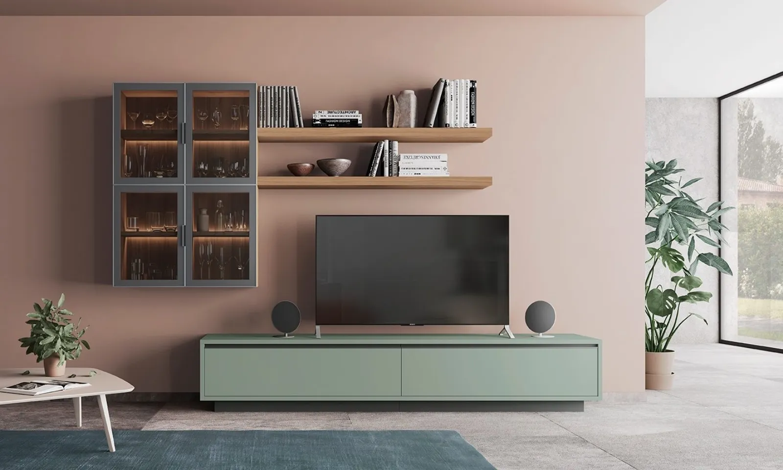 Parete Attrezzata Golf L05A di Colombini Casa: scopri una delle più originali soluzioni in melaminico per arredare il soggiorno insieme a noi
